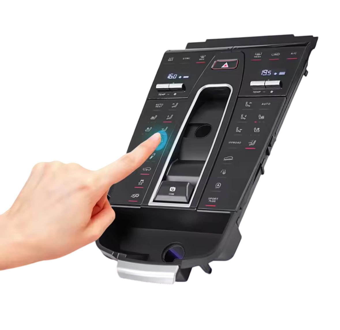 La nostra console touch full tasti, compatibile con tutte le versioni benzina, trasforma completamente l'interno della tua Macan con un look moderno e raffinato. È plug & play, quindi si installa facilmente senza alcuna modifica.