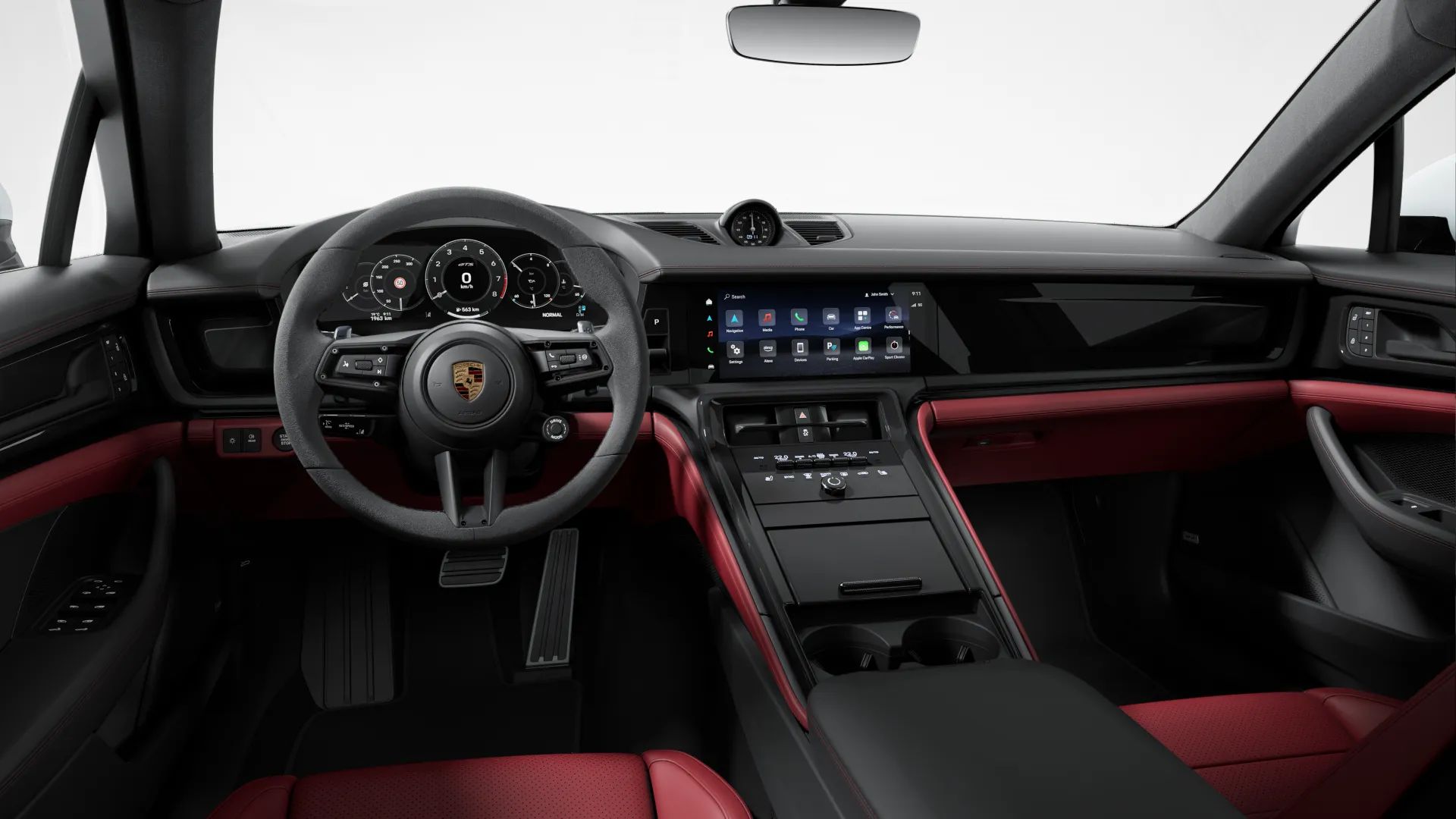 Interni in pelle liscia bicolore nero e rosso bordeaux