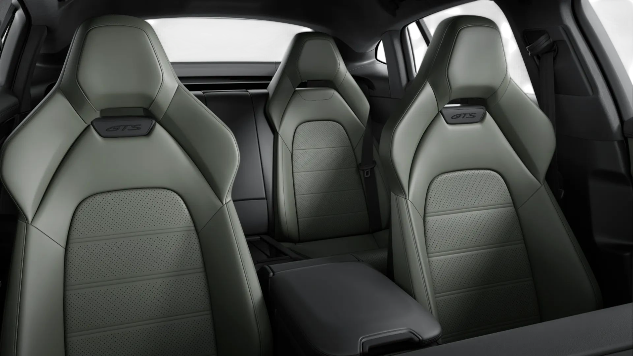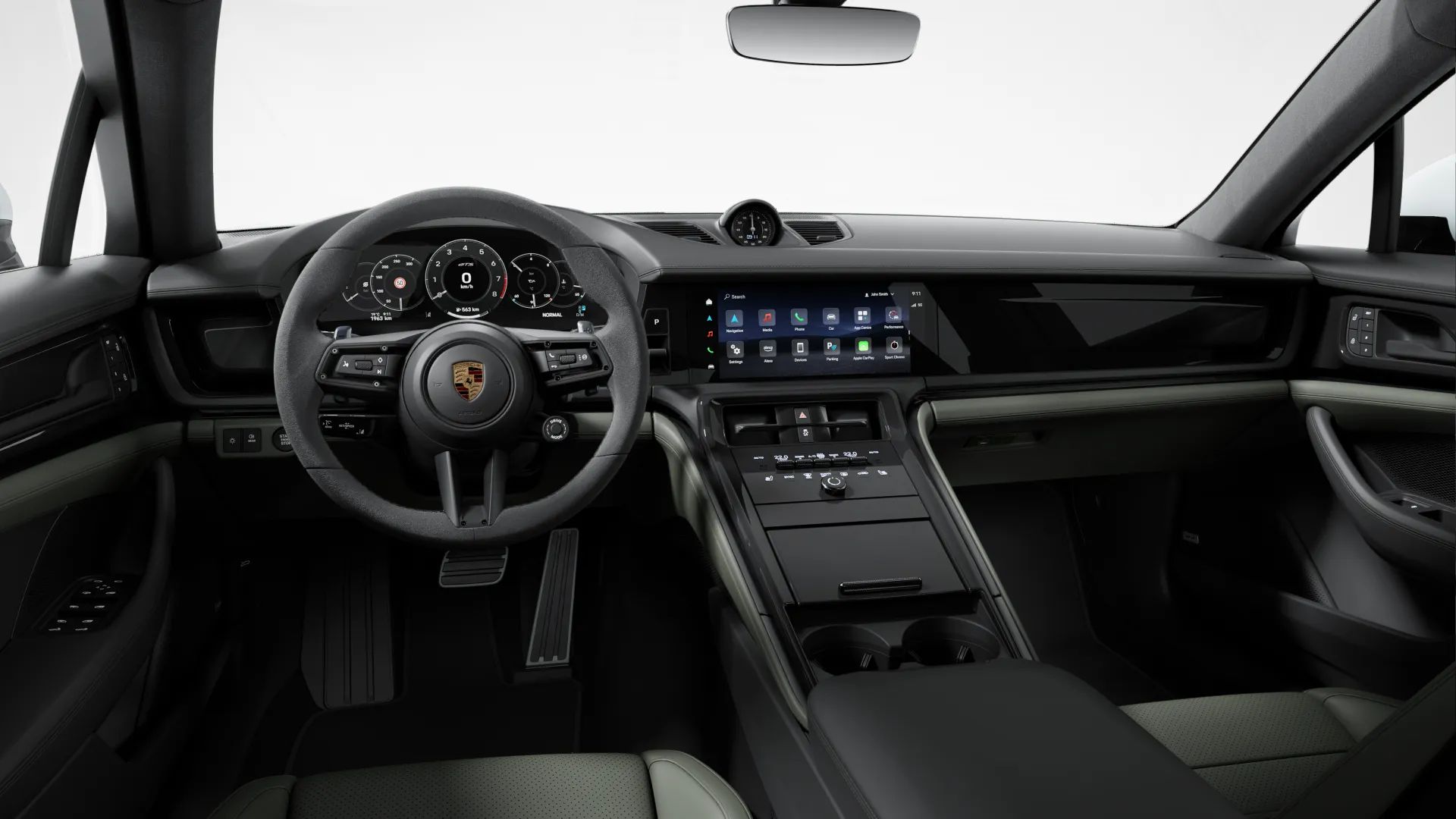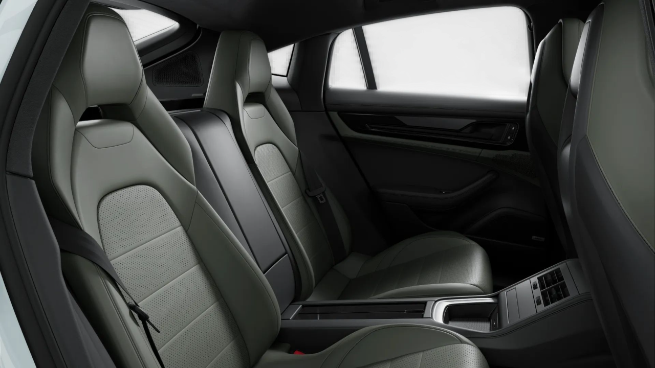 Interni in pelle liscia bicolore nero e verde notte